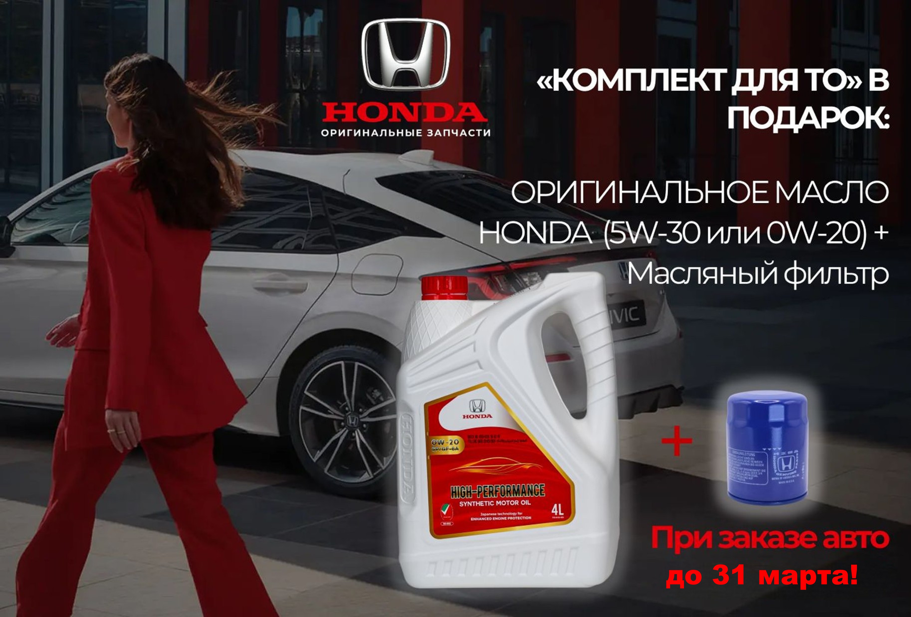 Спецпредложение февраля: Комплект «Оригинальное масло Honda 4L + масляный фильтр Honda» в подарок!» — для всех, кто оформит автомобиль под заказ до 31 марта 2026г.